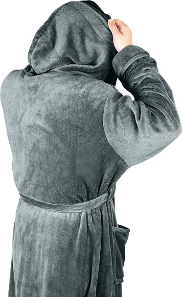 Men’s Hooded Dressing Gown - Super Soft Men’s Fleece Robe, Cozy Hooded Plush Loungewear