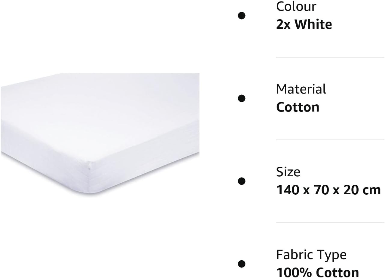 2pcs Cotton Jersey Fitted Baby Cot Bed Sheets 140 x 70 cm White