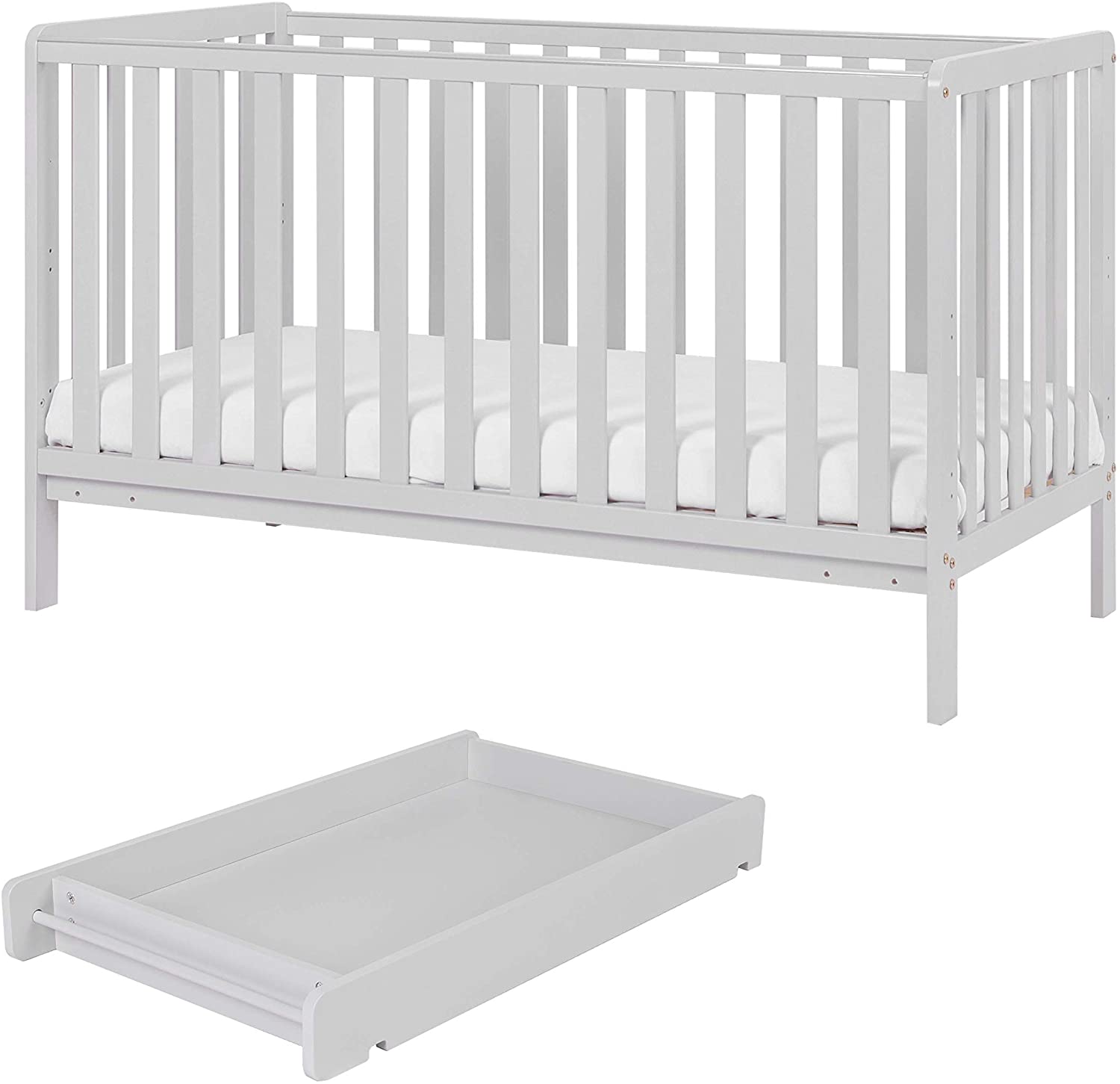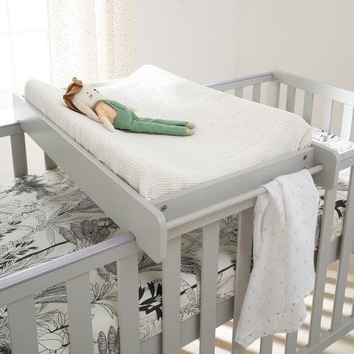 Wooden Cot Bed & Cot Top Changer 3 in 1 Convertible Baby Cot Bed, Toddler Bed and Matching Cot Top Baby Changer (Dove Grey)