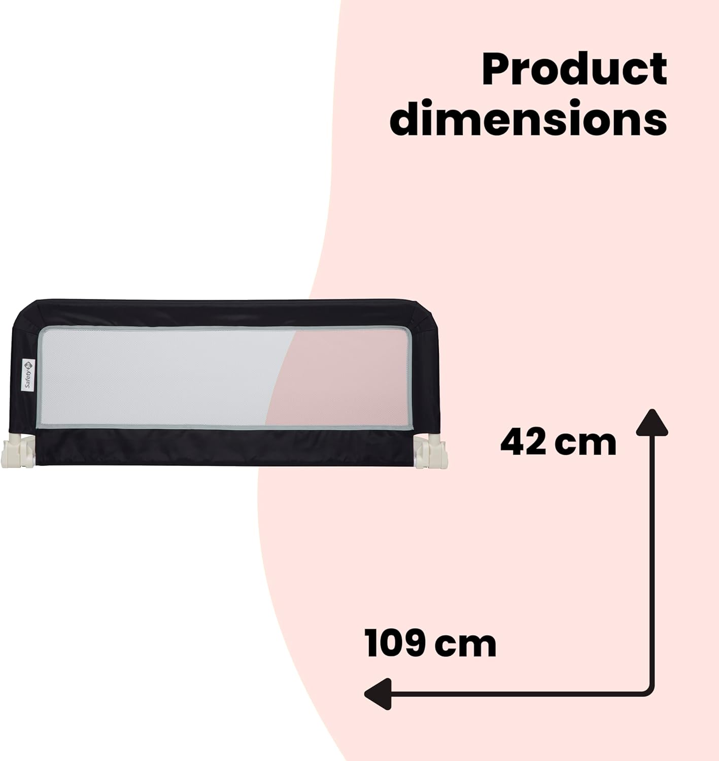 • IDEAL FOR TRAVEL: this foldable and portable bed guard closes and unfolds for easy transport (76 cm length folded - dimensions when open: 109 x 37 x 42 cm (WxDxH))