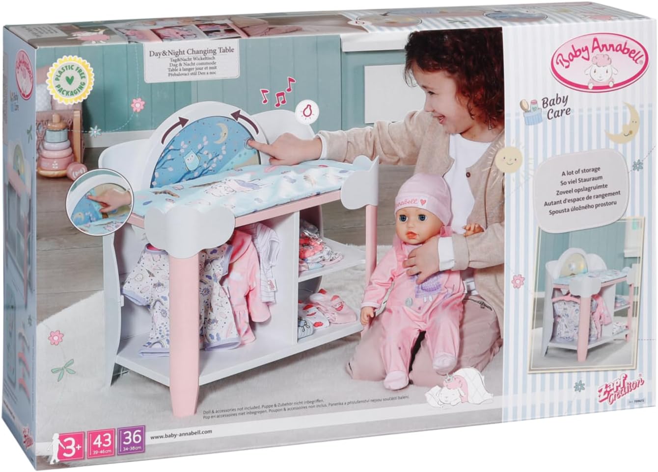 Baby Annabell Day & Night Changing Table 709672 - For 36cm & 43cm Baby Annabell Dolls - Light Effects, Changing Mat, Hangers - Require 3 AAA Batteries (Not Included) - Suitable for Kids From 3+ Years