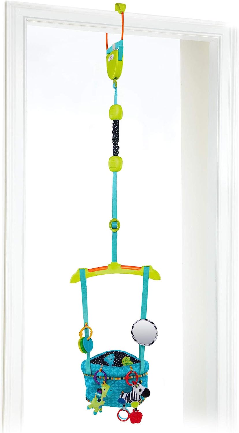 Door Jumper & Bouncer - Playful Parade with Padded Seat & Taggie Tags, Door Frame Clamp, Adjustable Strap, Easy Storage & Transport, Ages 6 Months +