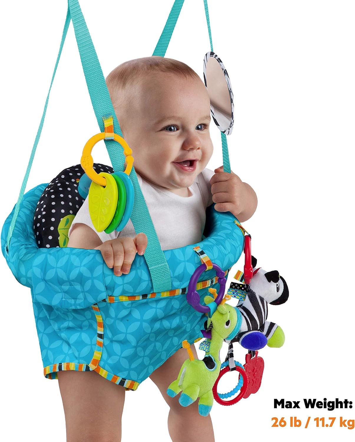 Door Jumper with Padded Seat, Door Clamp, Adjustable Strap, 4 Take Along Toys, Ages 6 Months +, Bounce and Spring Deluxe, 1 Count, Pack of 1