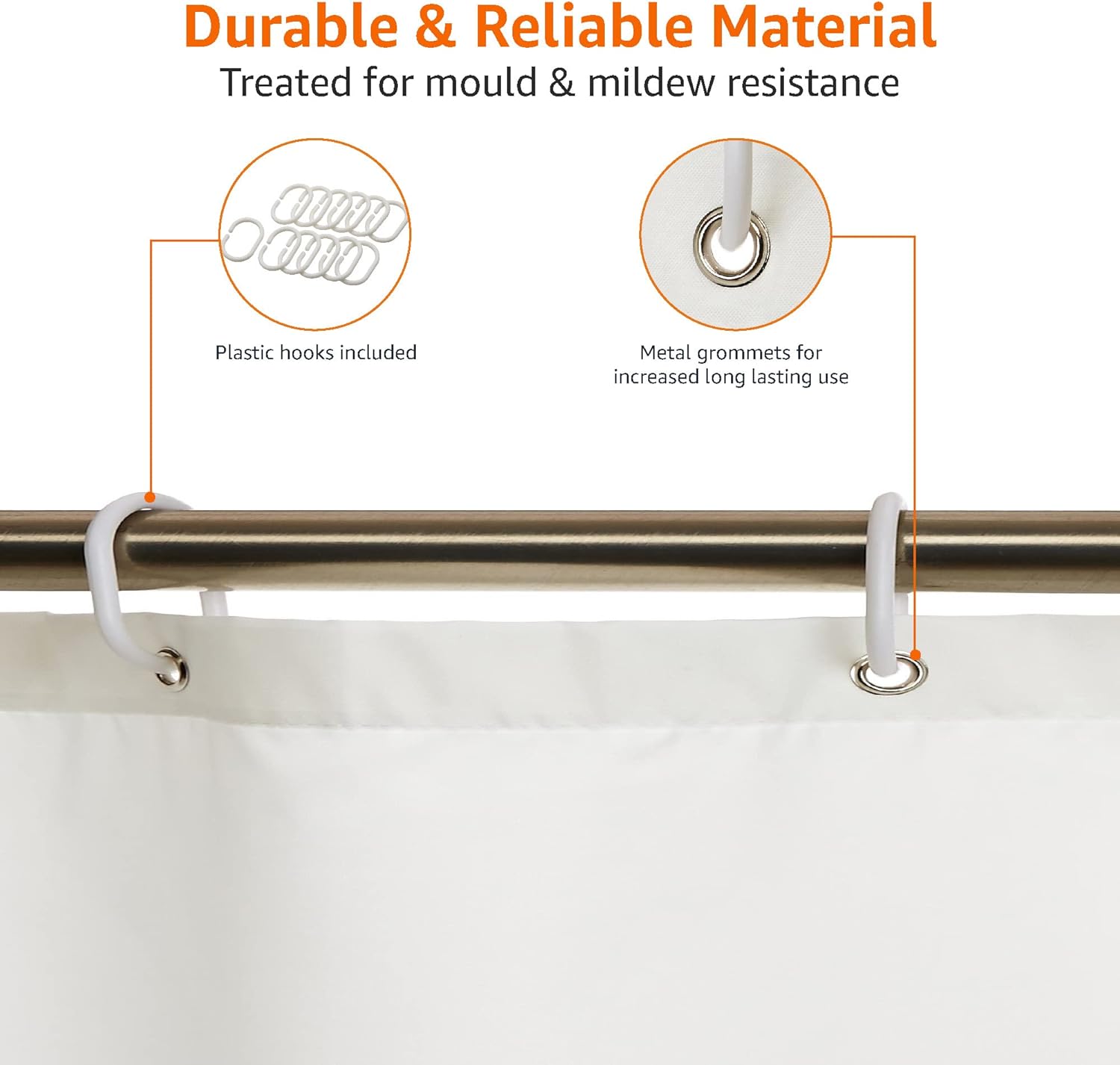 Fabric Shower Curtain Mould Resistant and Water Repellent, White, 180 x 180cm