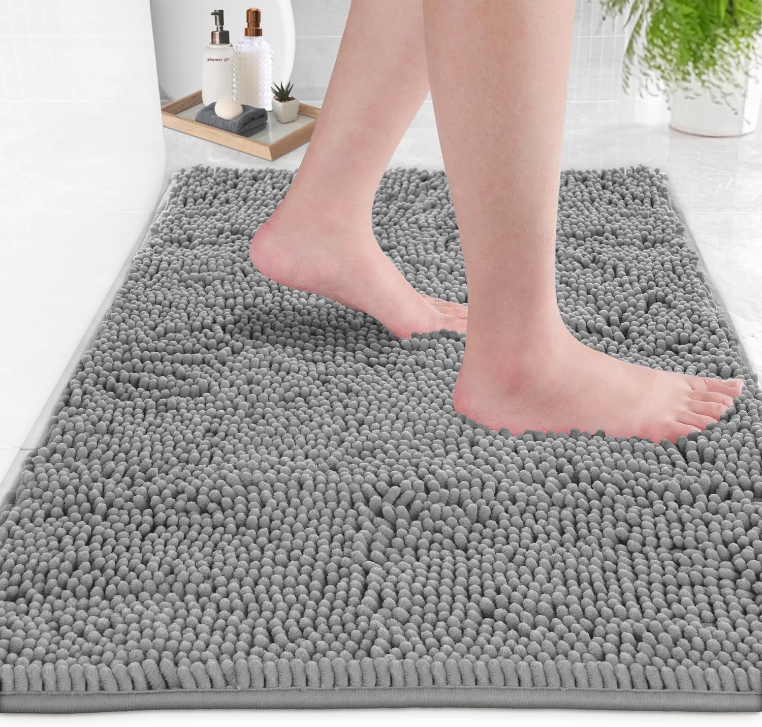 Extra-Soft Plush Bath Shower Bathroom Rug, 1'' Chenille Microfiber Material, Super Absorbent Shaggy Bath Rug, 60*43 cm