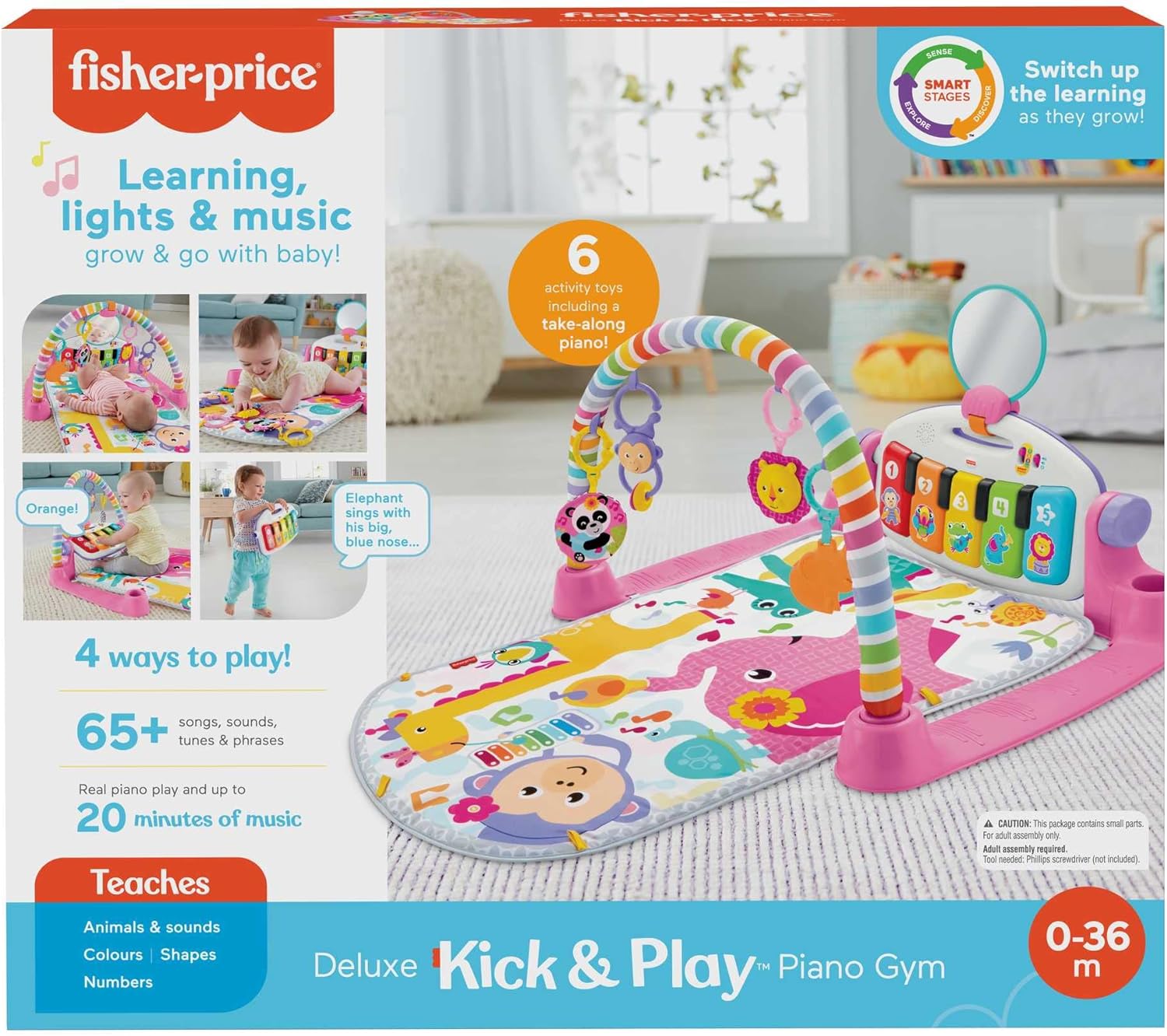 Fisher-Price Baby Play Mat | Deluxe Kick & Play Baby Play Gym for Newborn Baby to 3 Year Olds with Light Up Piano, Toys and Comfy Baby Mats for Floor Play | Playmats & Floor Gyms