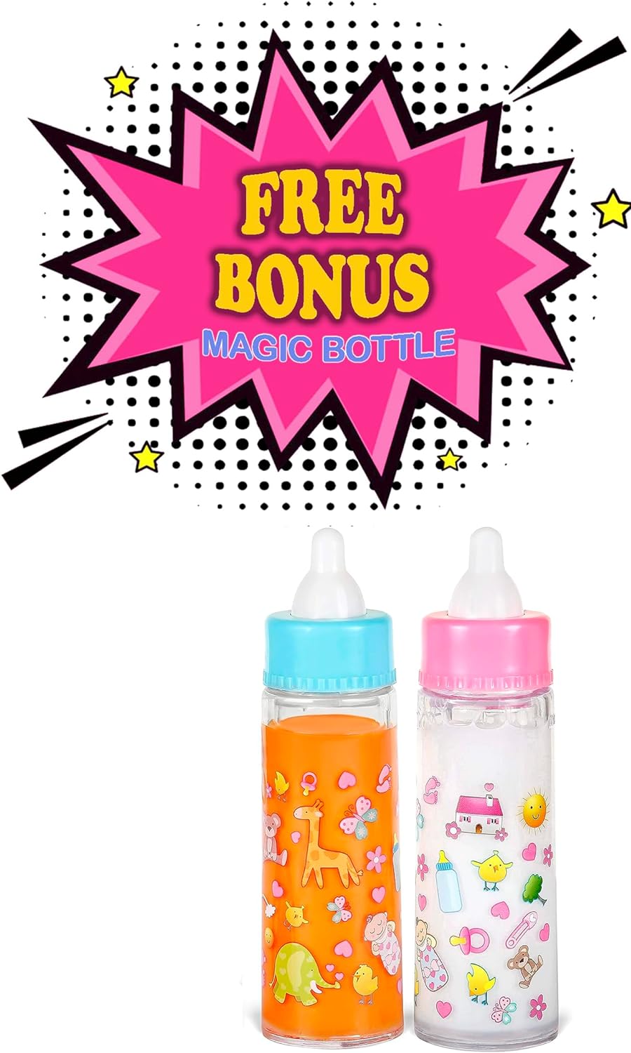 fash n kolor®, My Sweet Baby Disappearing Doll Feeding Set | Baby Care 6 Piece Doll Feeding Set for Toy Stroller | 2 Milk & Juice Bottles with 2 Toy Pacifier for Baby Doll