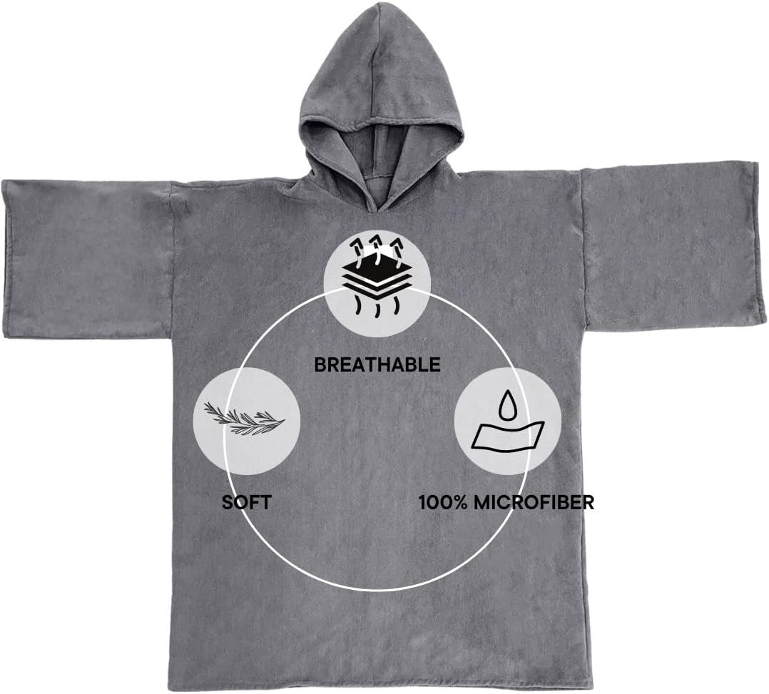 Hooded Towel Poncho - Super Absorbent Microfiber Adult Beach Towel Robe