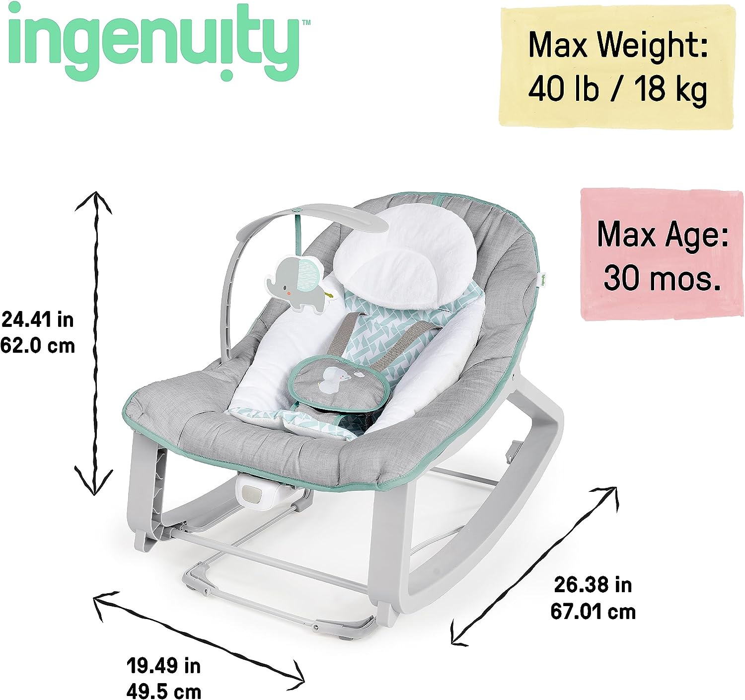 Ingenuity Keep Cozy 3-in-1 Grow with Me Vibrating Baby Bouncer, Seat & Infant to Toddler Rocker, Vibrations & Toy Bar, 0-30 Months Up to 40 lbs