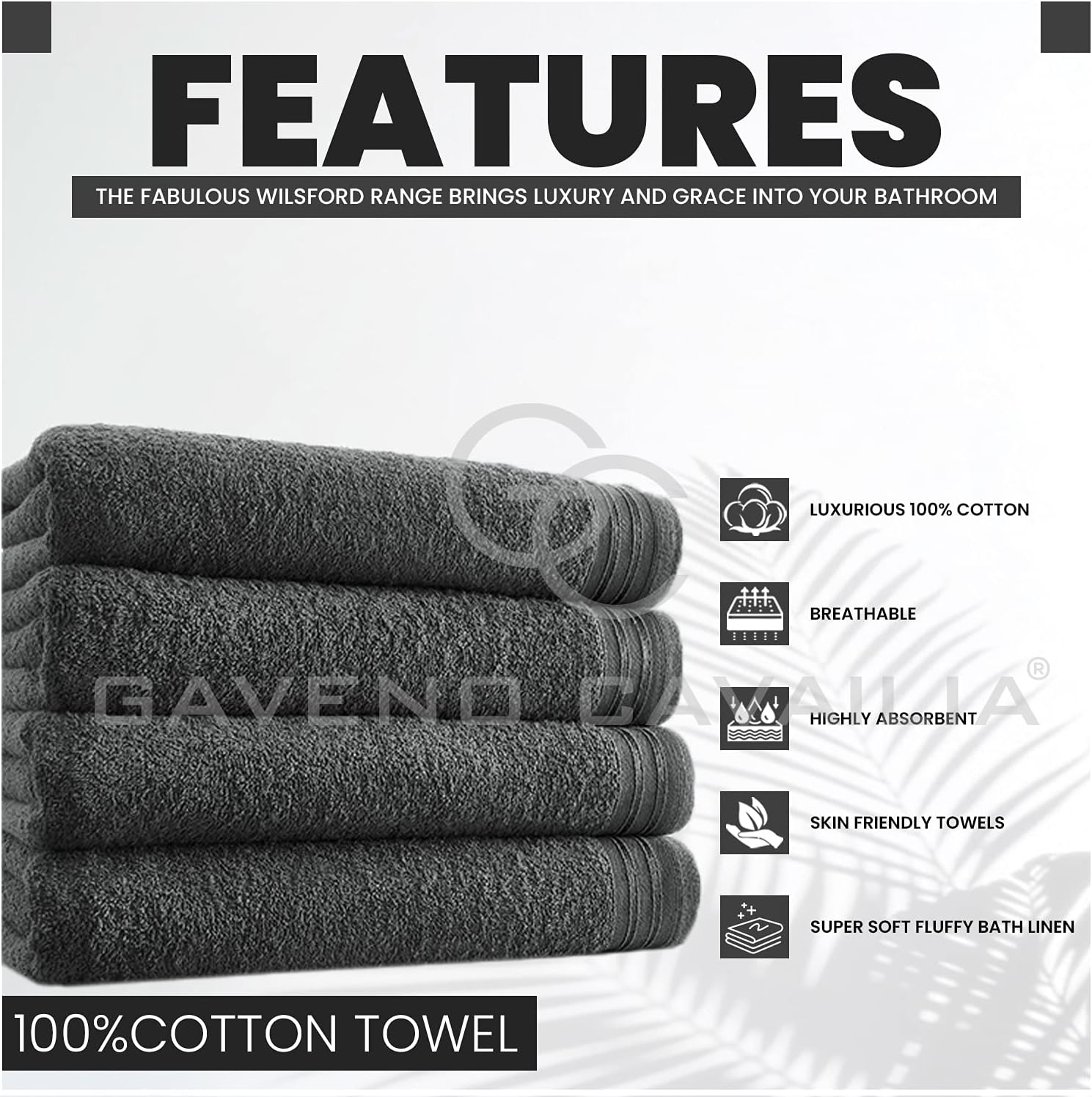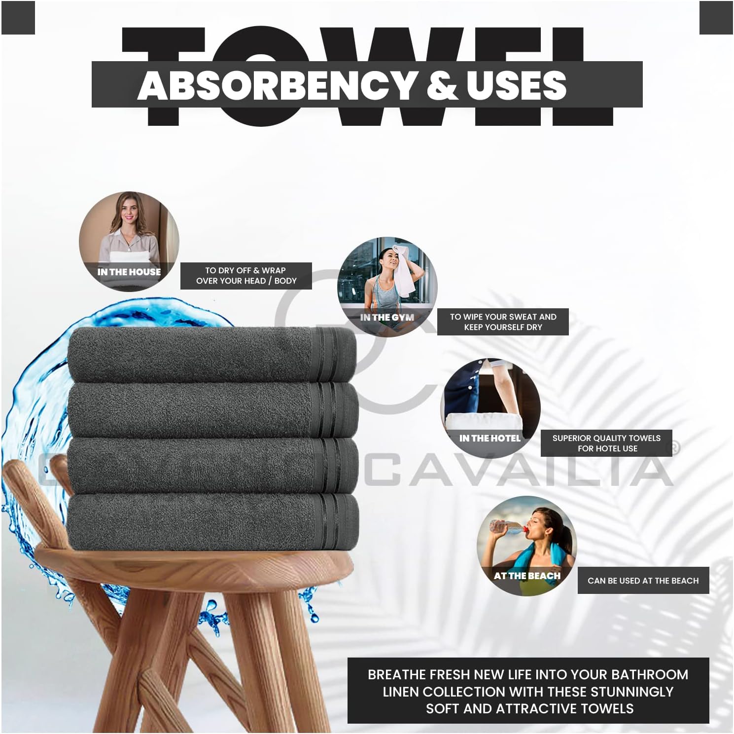 Highly Absorbent Egyptian Cotton Towel Set - 450 GSM Extra Soft Large Bath Towel, 4 Pack, 135x35cm