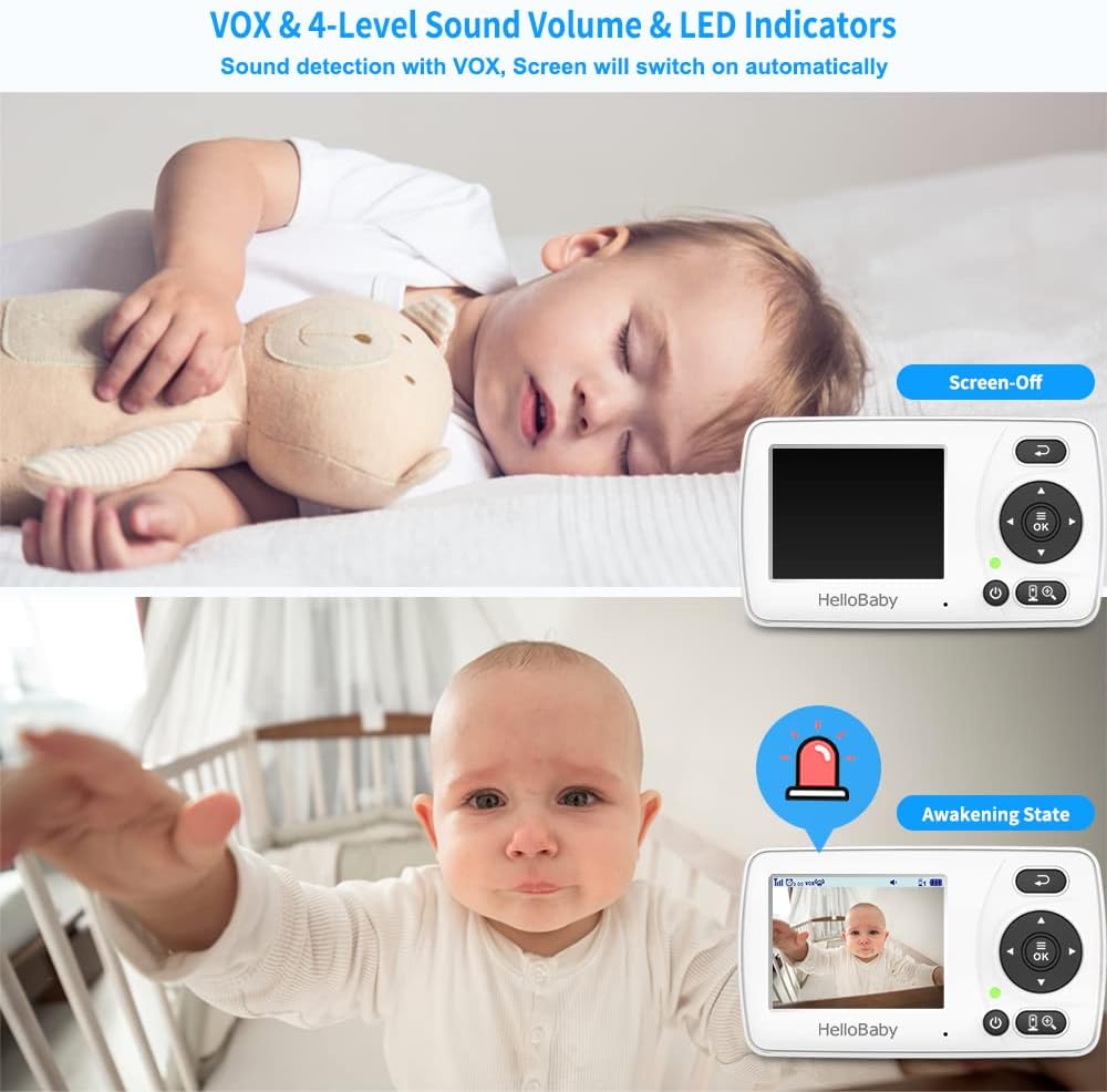 HelloBaby Baby Monitor, Upgrade Video Baby Monitor No WiFi for Privacy, Infrared Night Vision Camera, 960p, ECO Mode,Lullaby,Digital 2X Zoom,Alarm Function (HB30 new)