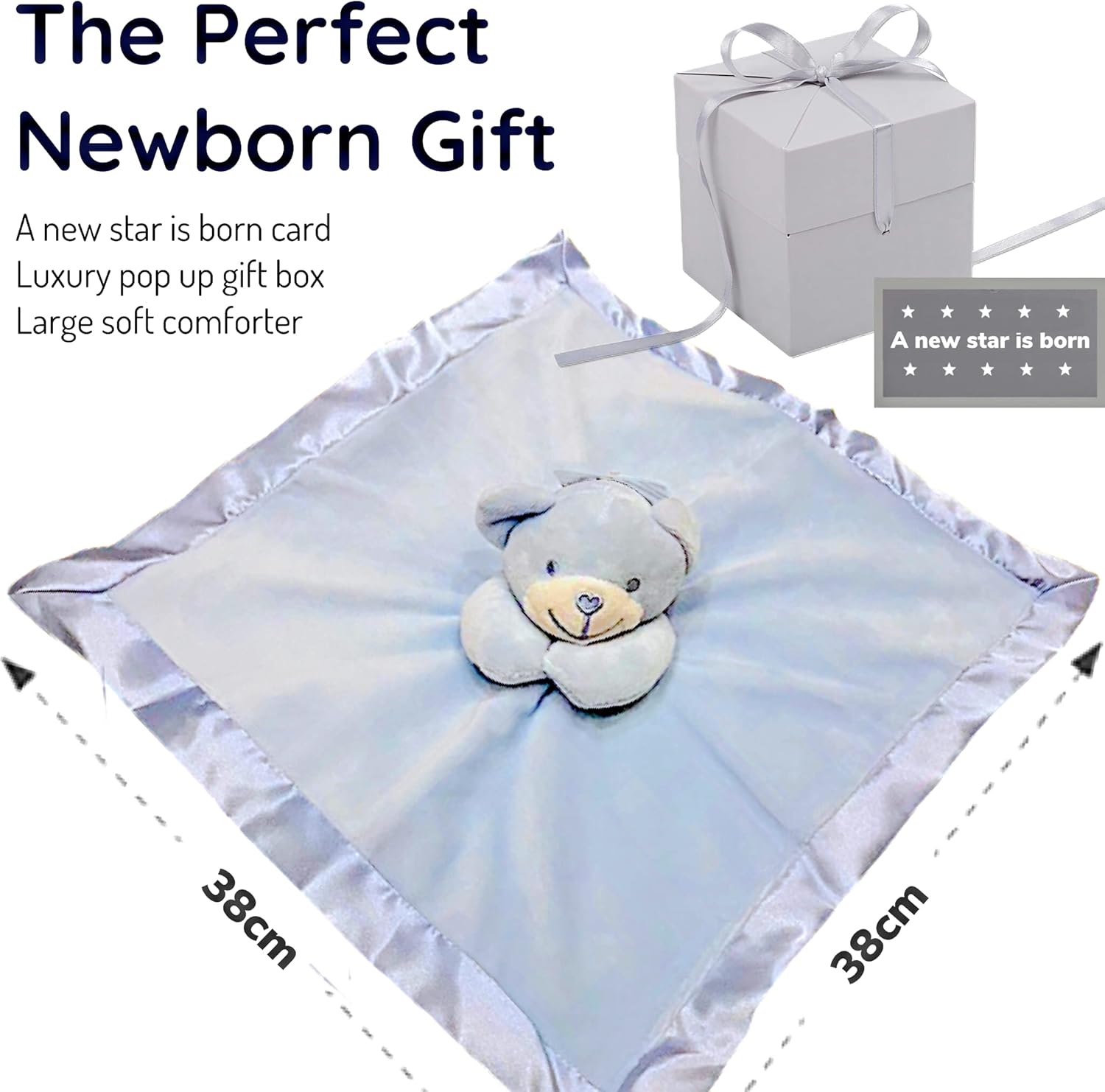 "A New Star is Born" Baby Comfort Blanket in Gift Box | Plush Teddy Security Blanket for Newborn Baby Boys | Soft Baby Comforter for Boys | New Baby Gifts for Mum, Baby Showers & Christenings