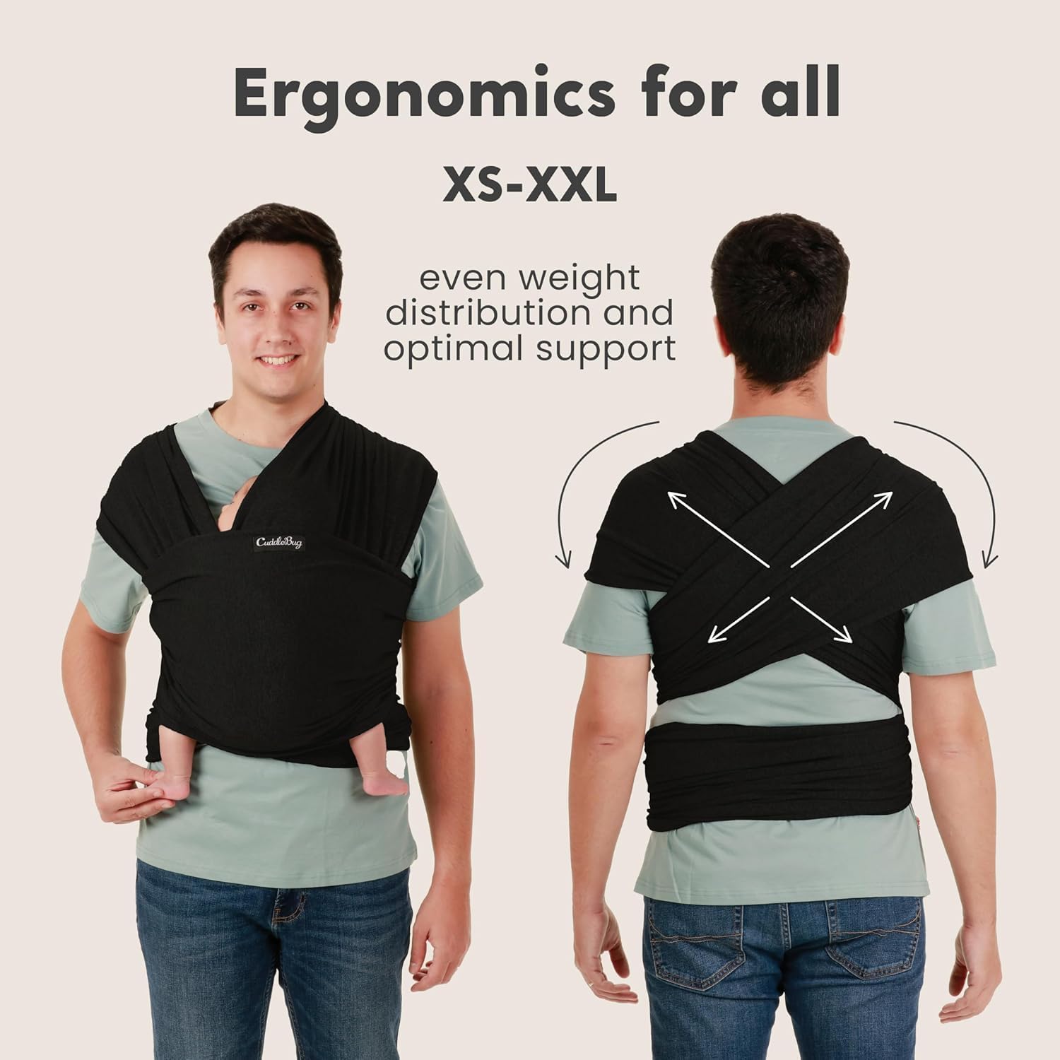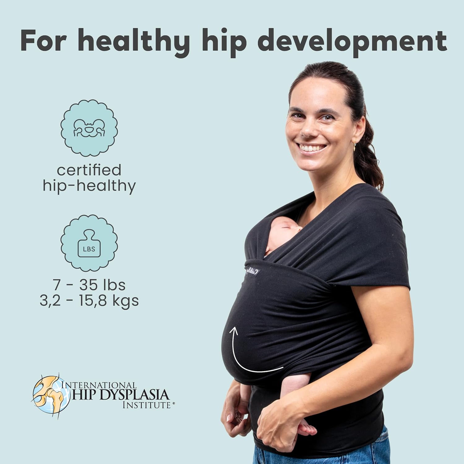 Baby Wrap Carrier for Newborns & Toddlers (7-35 lbs) - Hands-Free Baby Sling - Soft & Stretchy, Hip-Healthy Wrap - One-Size-Fits-All, Ergonomic Baby Holder for Mom & Dad - Perfect for Breastfeeding On-The-Go (Black)