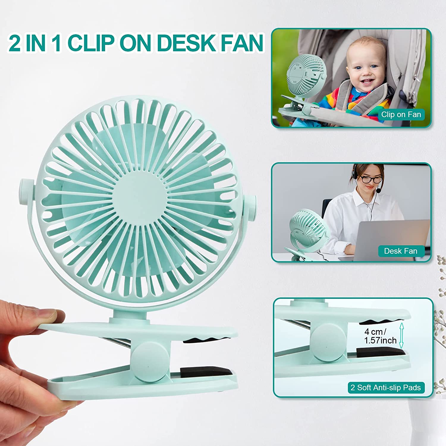 - Multipurposed Clip on Fan & Desk Fan: Our clip-on bed fan can clip at the thickness less than 4cm to fix position (such as clipping on a stroller and crib); or can be placed easily on any smooth flats. There are two soft anti-slip pads on the clip, which can prevent scratches. Extremely stable clip can hold the fan safely.