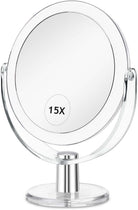 Double Sided Vanity Makeup Mirror with Stand - 1X/15X Magnification, 6.25 Inch