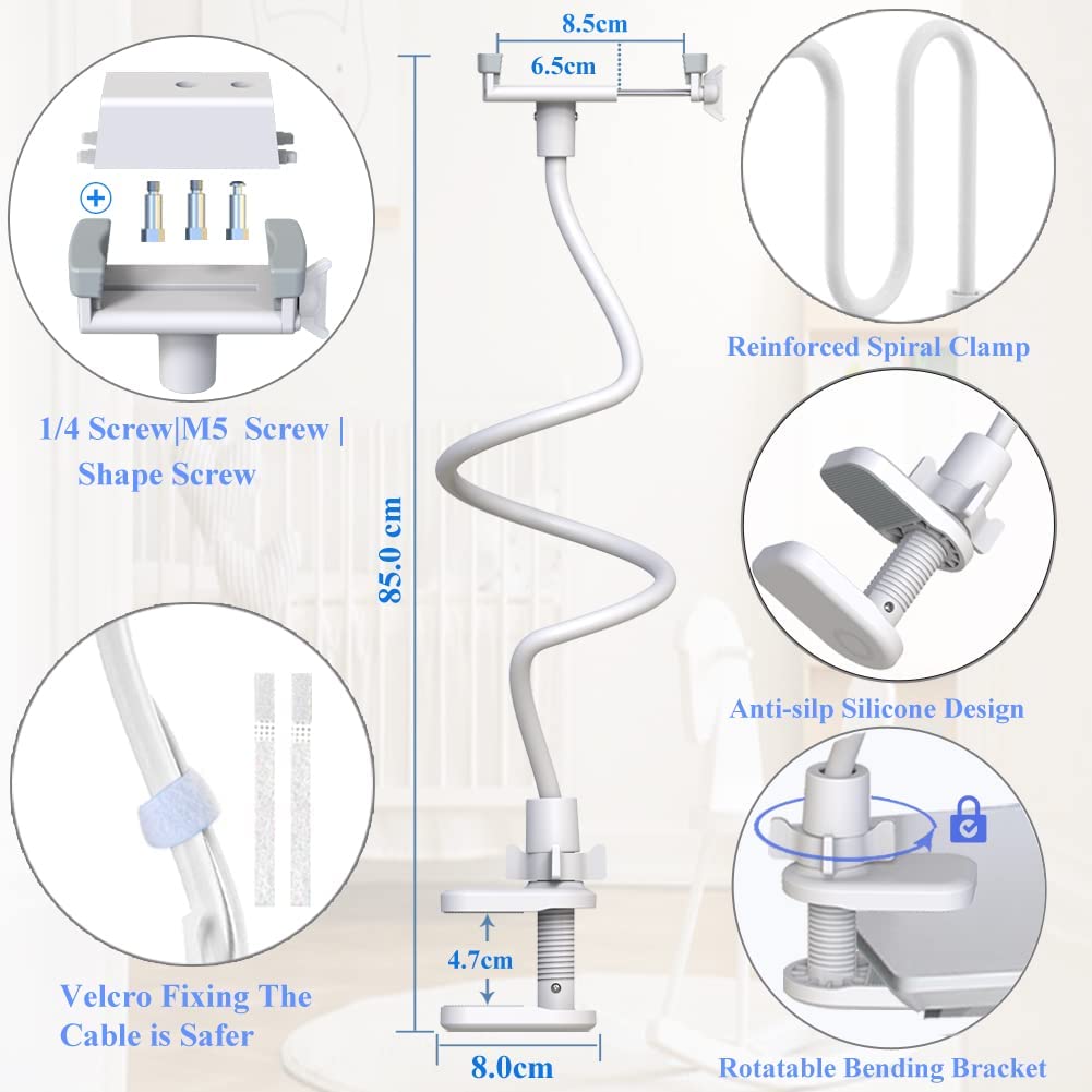 - 85cm Long size to get the best view of baby:Fixed the holder to the baby's bedside and place a baby camera on it, you can get a bigger and clearer view of your baby. It is safe that the baby monitor have to far away from the baby. Our long baby monitor holder will help you to do it.