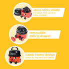 Let your child explore the world of imaginative play with the Henry Vacuum Cleaner Toy, designed to look and function just like the real thing! This red toy vacuum cleaner is a replica of the iconic Henry Hoover, complete with lifelike details and accessories that will make your little one feel like a grown-up while they "help" around the house.