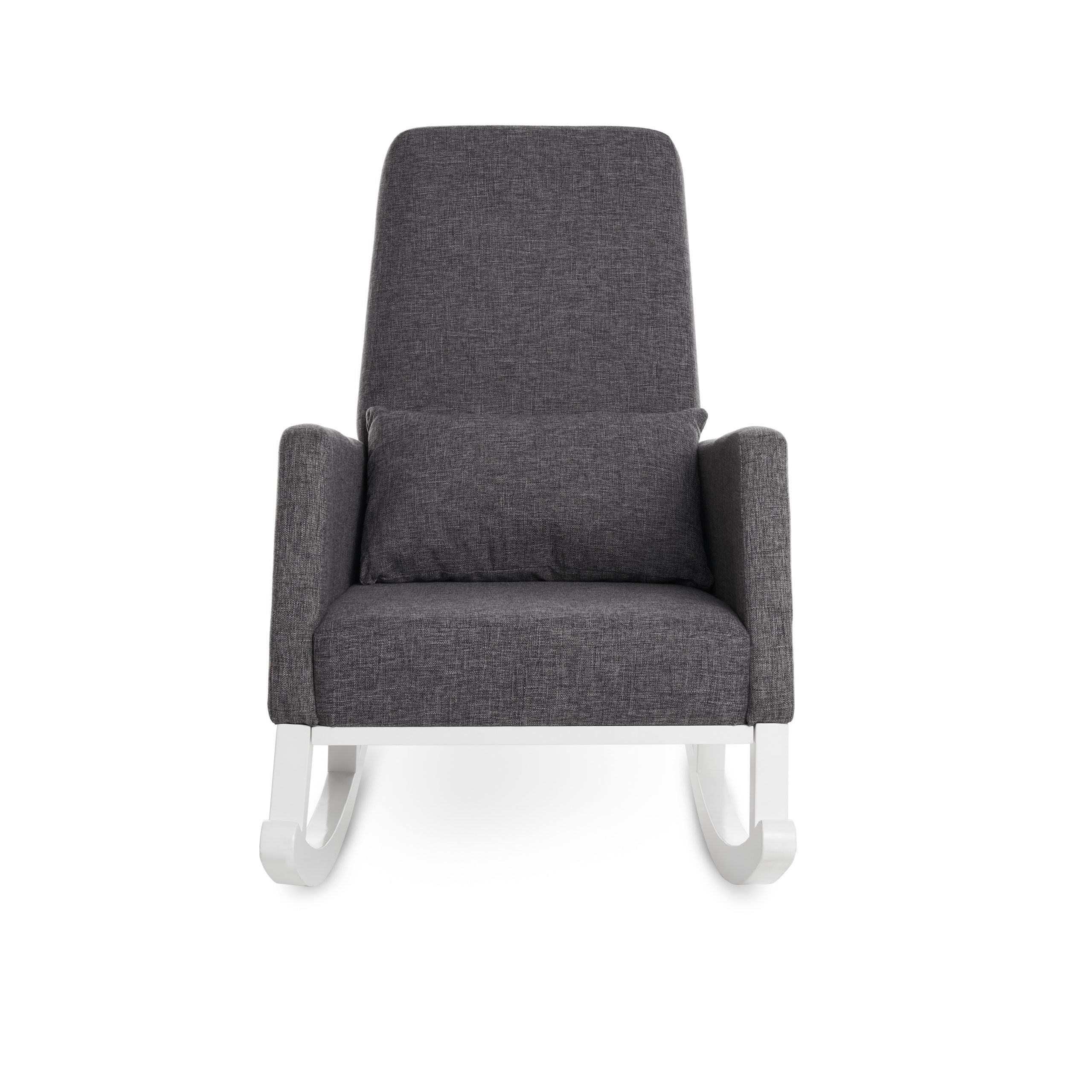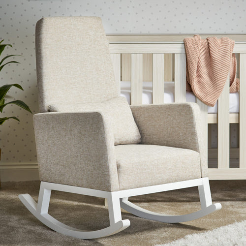 The solid wooden frame and high back provide long lasting support from head to toe, while the deep foam seat and added cushion provide superior comfort. The Obaby high back rocking chair is designed to fit into any nursery setting due to its soft and durable weaved upholstry in a neutral shade.