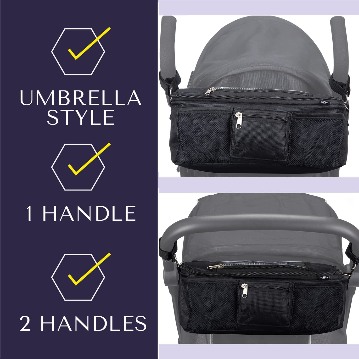 - Great Value - Universal, WILL FIT ALL SINGLE WIDTH PRAMS and pushchair styles with our Easy-fit integrated straps. No need to change your stroller organiser if you change your pram. DURABLE AND HARD WEARING this is the Ultimate Pram Storage Solution that is designed to last for as long as your child needs it.