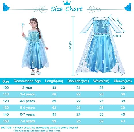 Perfect for a variety of events, including birthday parties, Halloween, cosplay, Christmas, Easter, and even as a flower girl or bridesmaid dress. This versatile outfit is suitable for girls aged 2-10, ensuring a perfect fit for any occasion where she wants to shine.