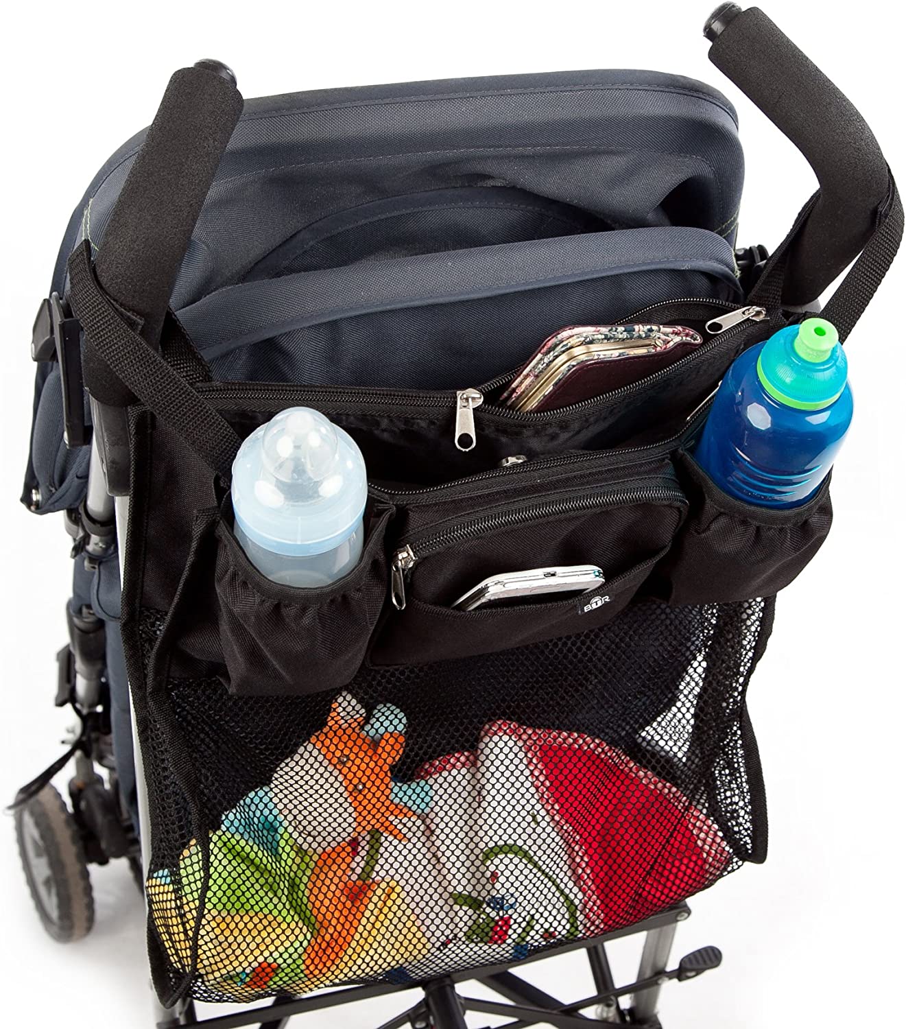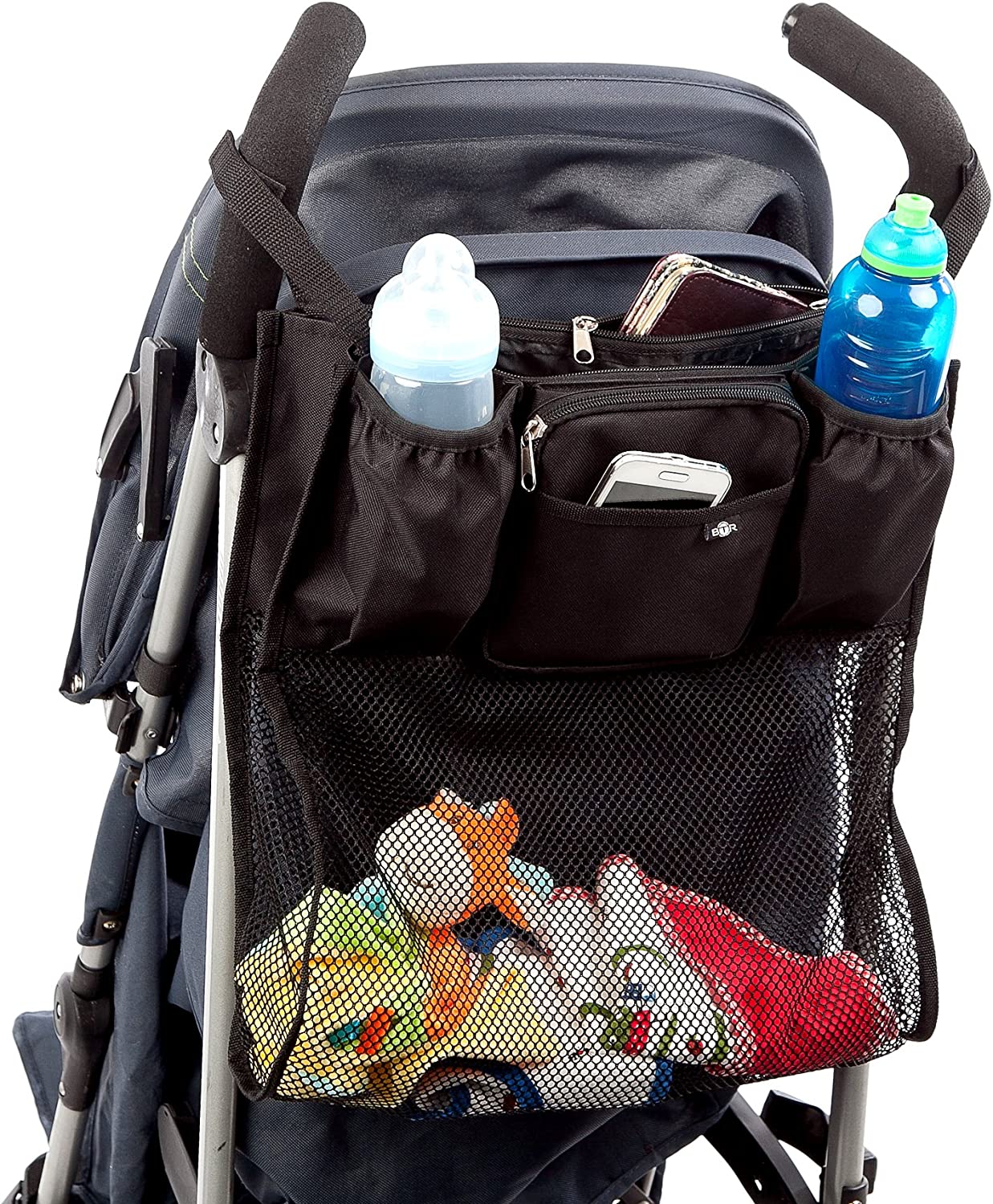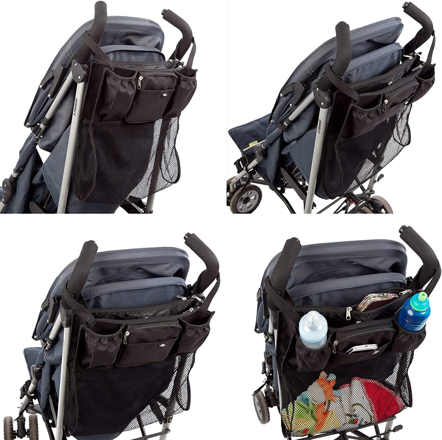 - Large Storage Space: With large zipped pockets & the attached shopping net you can fit in drinks, snacks, wipes, dummies, toys, keys, purses or spare nappies. It’s easy for you to grab what you want instead of rummaging through your pockets or under your pram – keeps your organised