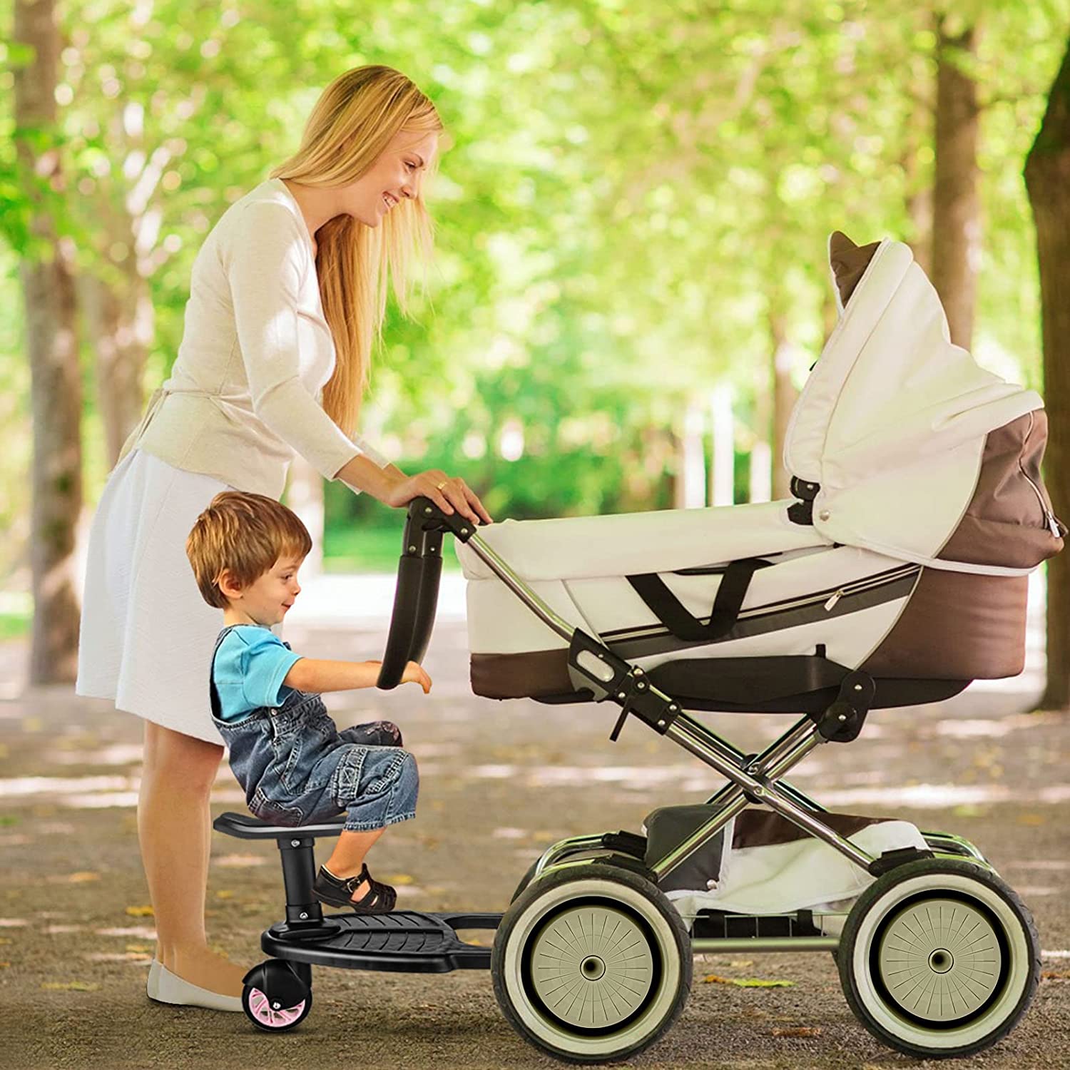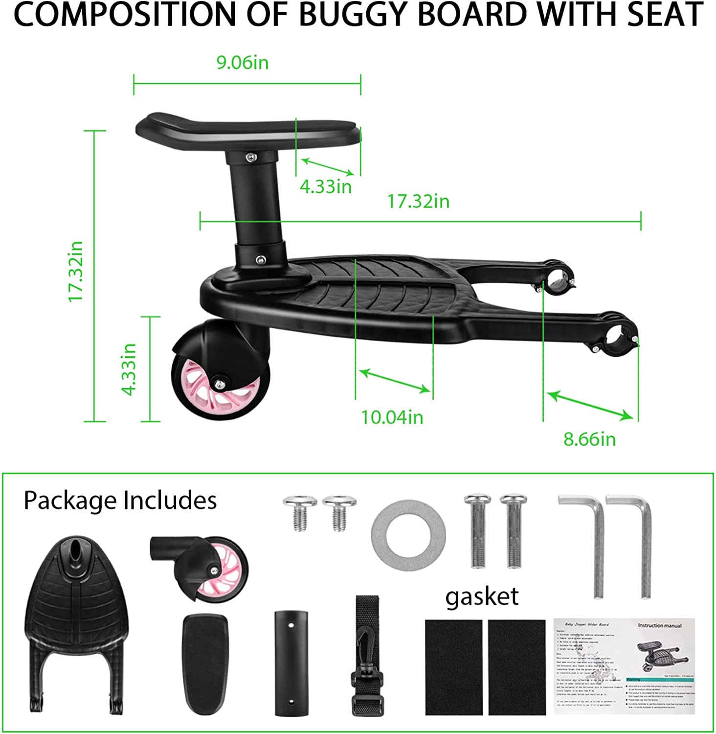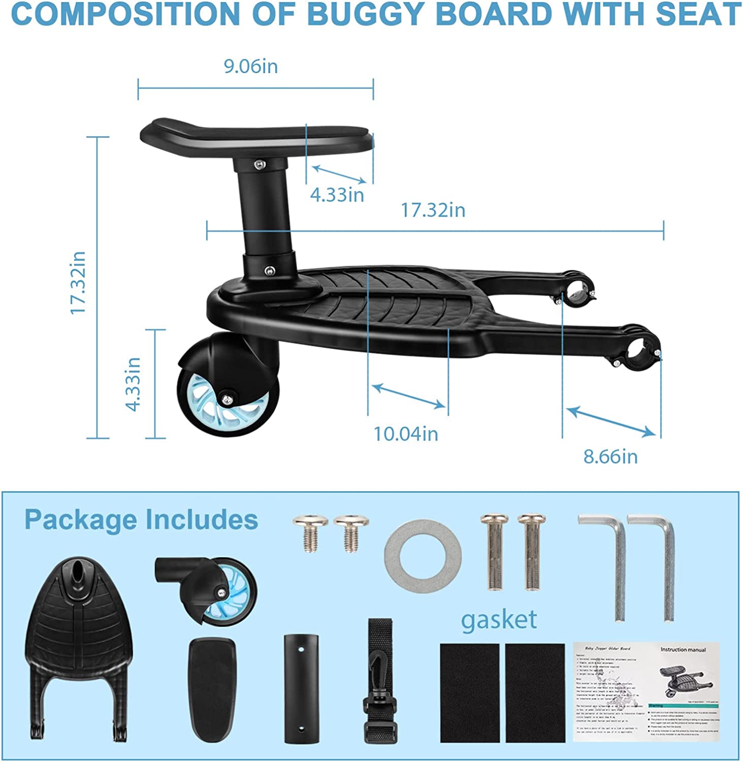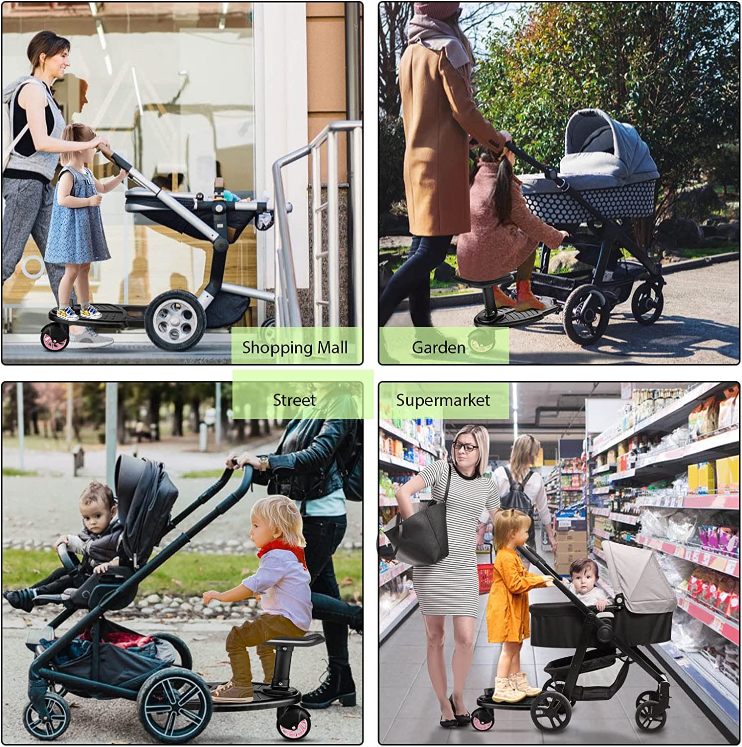- BETTER CARE OF THE CHILDREN: This toddler buggy board is specially designed for families with 2 children, it can be attached to the back of the stroller. When the child is too tired to walk, the child can sit or stand on the mini buggy board, so that you can take an extra child, making it easier for you to travel with your child, and making you take care of your child better.