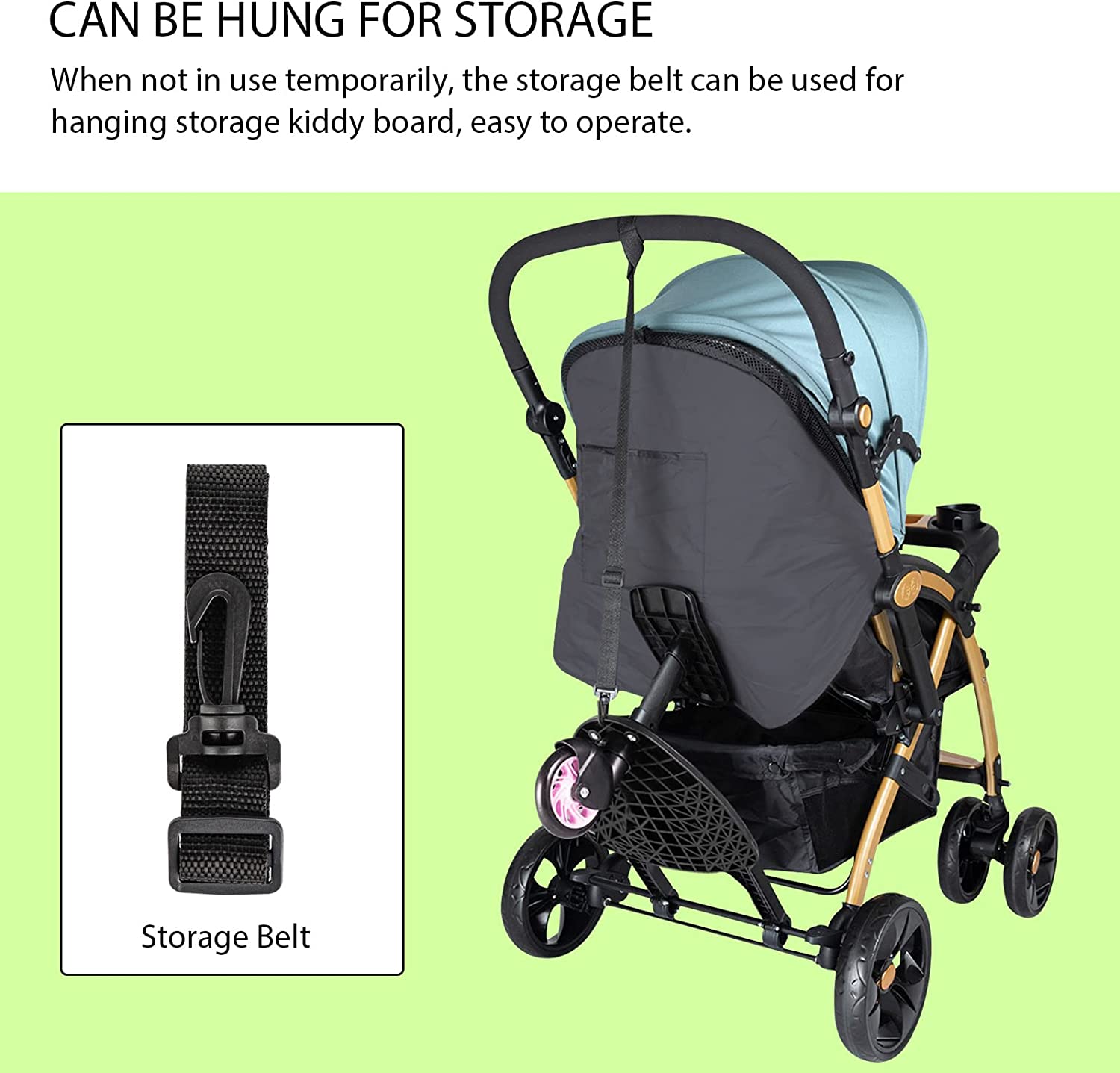 - WIDE APPLICATION: This portable kiddy board is an ideal companion for strollers, when you take your child to shop in malls and supermarkets, walk in parks and streets, you can install this child board, it is easy to carry 2 children, and reduce your burden, make you better enjoy the time of walking and shopping with the children.