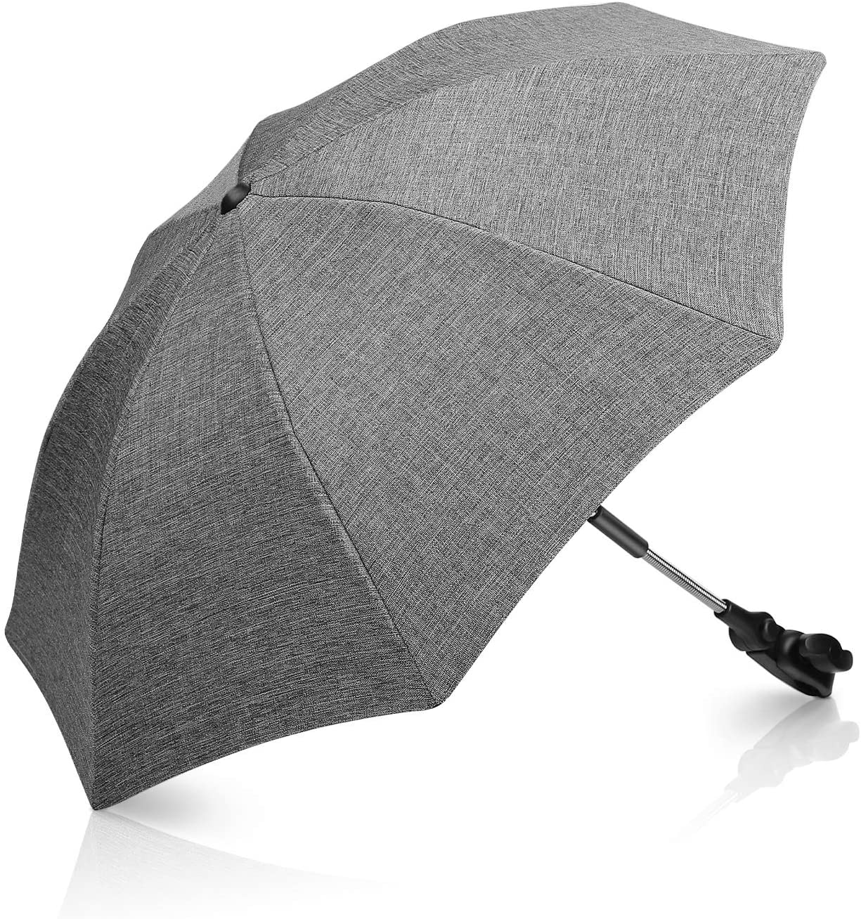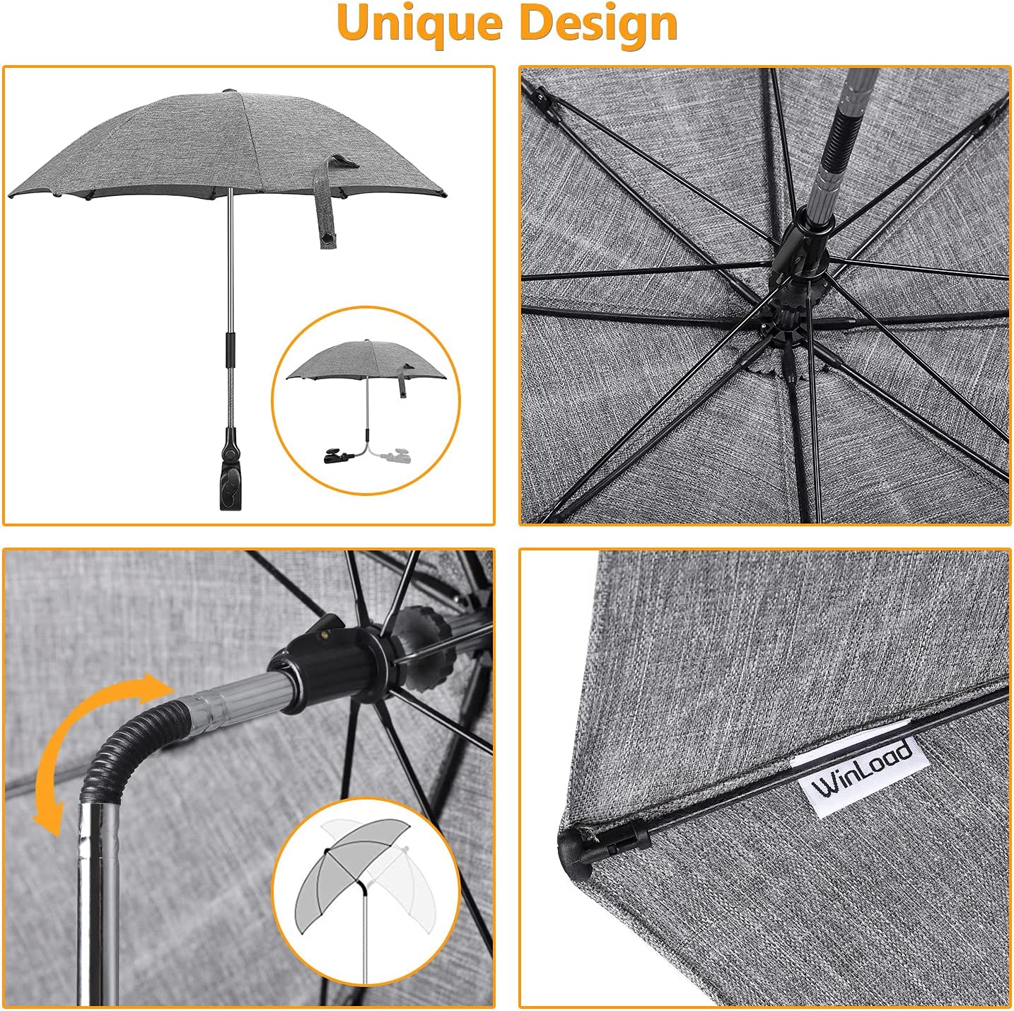 - 1.UV Protection SPF 50+: The pushchair parasol 360° fully protects your baby from harmful UV rays. This shielding accessory features a flexible section on the top that allows you to bend the stem for easy angle adjustment. The bending profile keeps your baby in the cool shade. Adjust the angled to shade your baby according to actual condition.