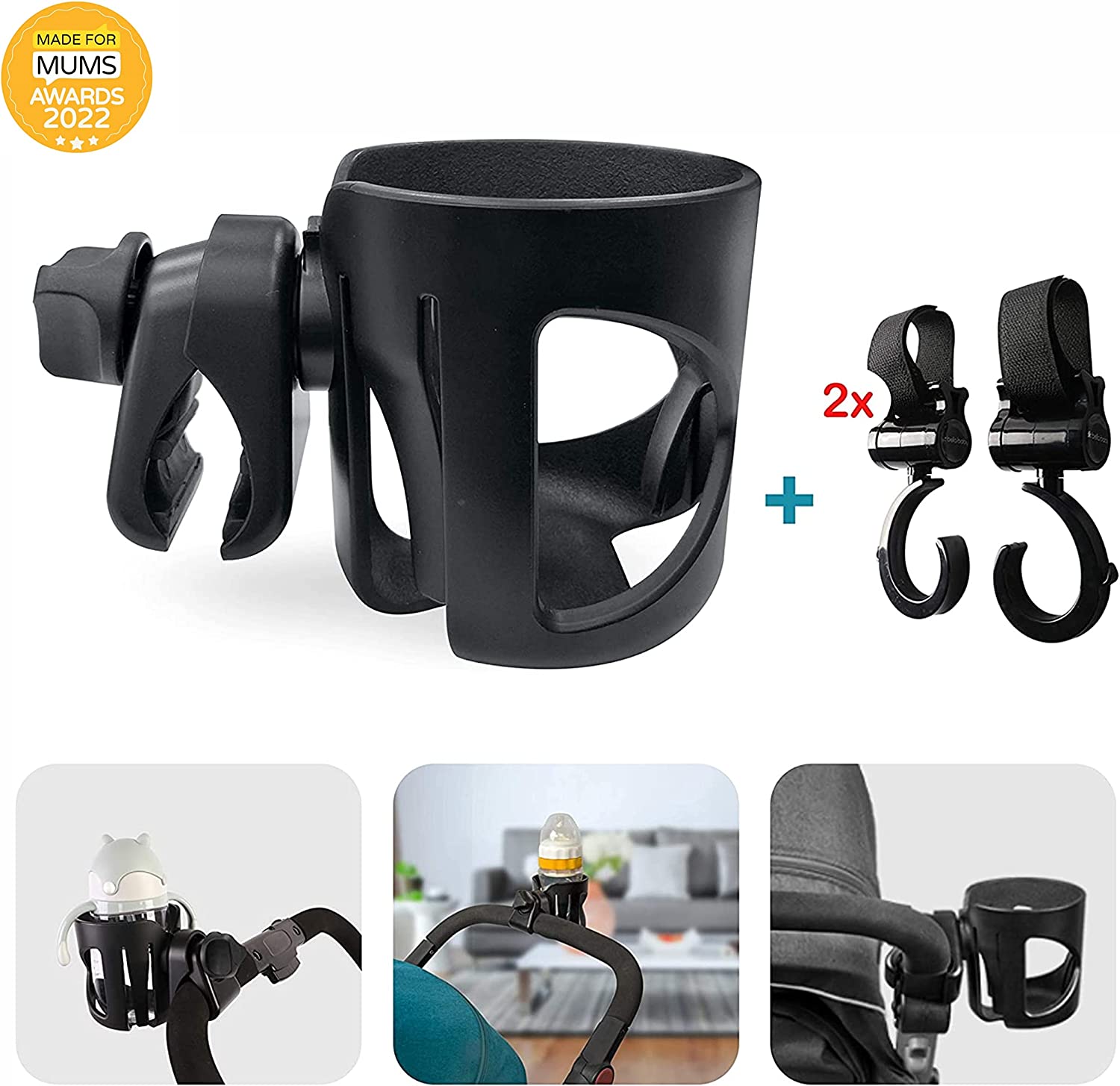 - EASY TO INSTALL - Pram cup holder can be installed in all different positions (360-degree turn) on any baby buggy pram. The universal stroller hooks are easy to attach to any buggy bar. This makes our set the perfect stable and strong grip stroller cup holder.