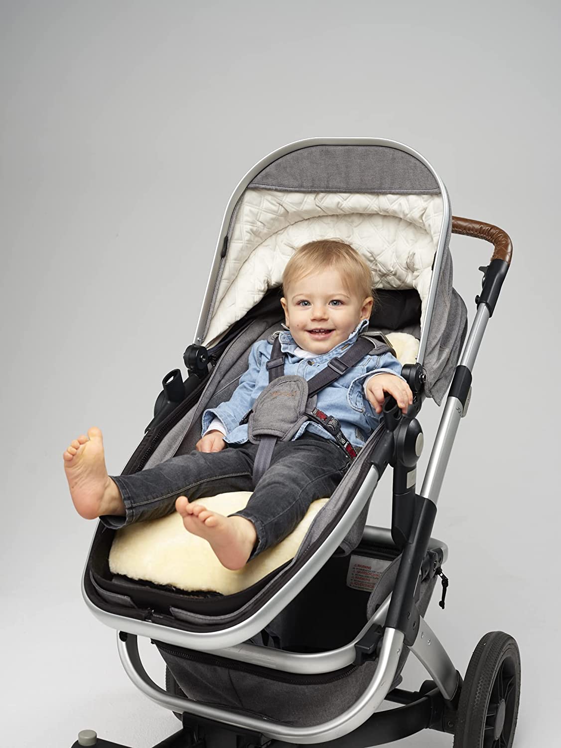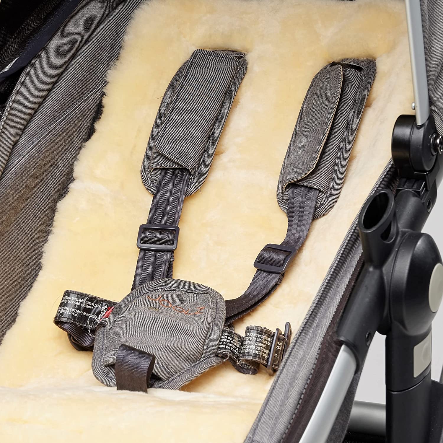- PRODUCT FEATURES: 100% genuine Australian Lambskin, soft & comfortable, breathable & temperature regulating (warm in winter & cool in summer), naturally anti-bacterial & hypoallergenic, universal fit with 11 harness slots. Protects your pram and keeps it clean. NOTE: The pram/stroller straps must be able to detach from the seat in order to insert them through the slots in the liner.