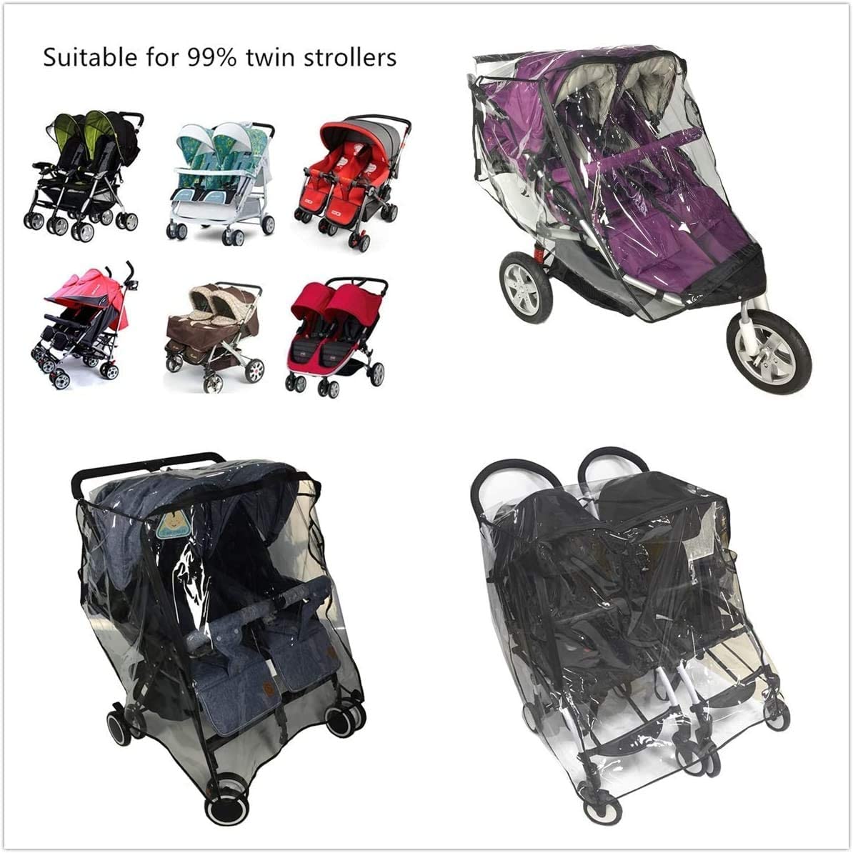 - The universal raincover fits on most stroller, buggy, jogger, pushchair and pram with a hood.
