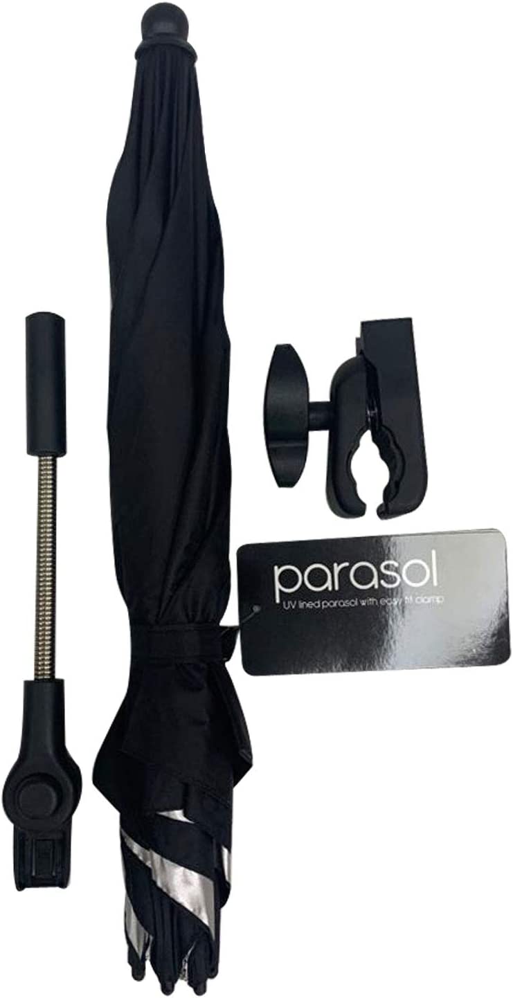 Universal UV Parasol Sun Canopy for Pushchairs and Buggy - Clip on Stroller Umbrella Black