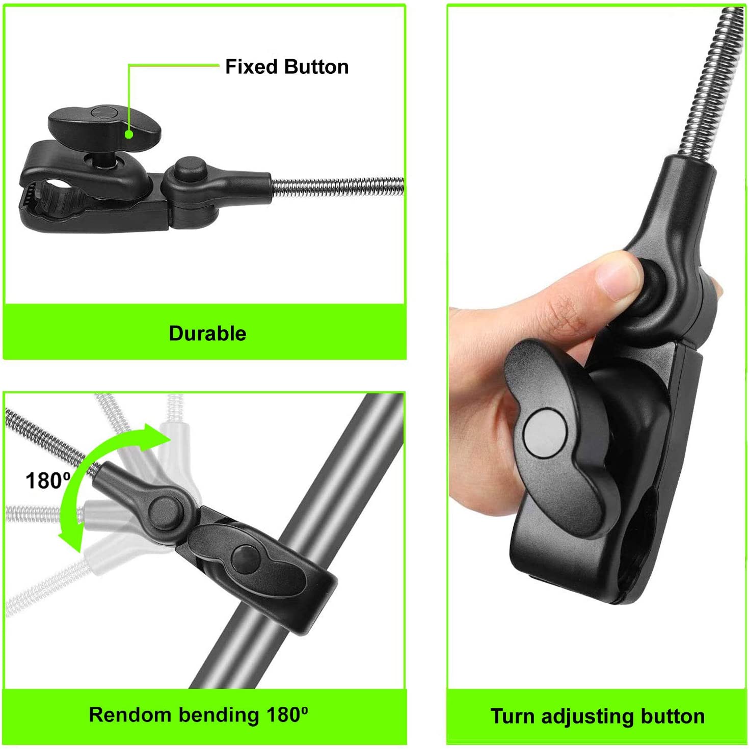 - With two jaws, umbrella maximum opening adjustable clamp to 3.5 cm. The baby stroller umbrella flexible base and simply bending handle make it easy to adjust the angle for optimal protection from the sun harmful UV rays. Adjustable Umbrella Clip - You can adjust the clip to suit your umbrella holder's diameter. We have tested it on Bugaboo Fox, Buffalo, all Bee models, city select baby jogger models, baby style oysters, it works perfect for almost every big brand out there.